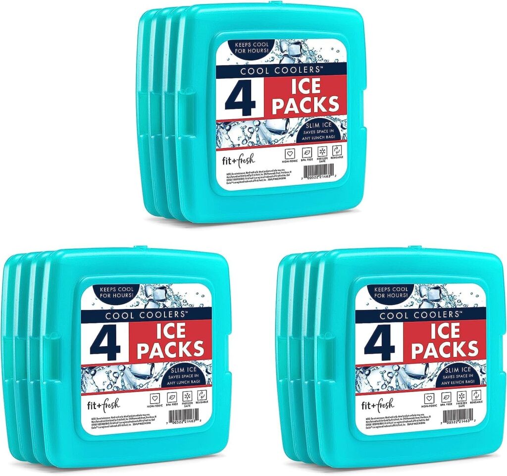 Cool Coolers by Fit + Fresh, Reusable & Long-Lasting Slim Ice Packs, Cold Packs for Lunch Boxes 12 Pack